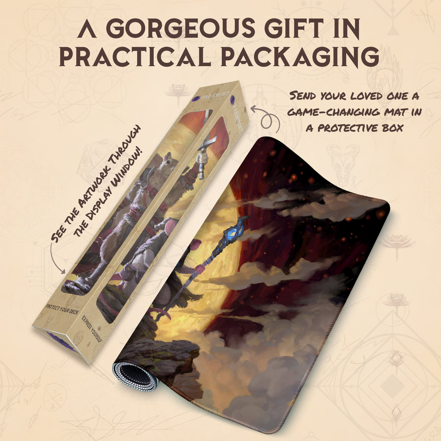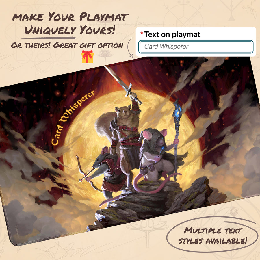 A legendary playmat to take your game up a notch. Make it truly yours with custom text options and impress your friends with the coolest - and most personal - playmat on the table.