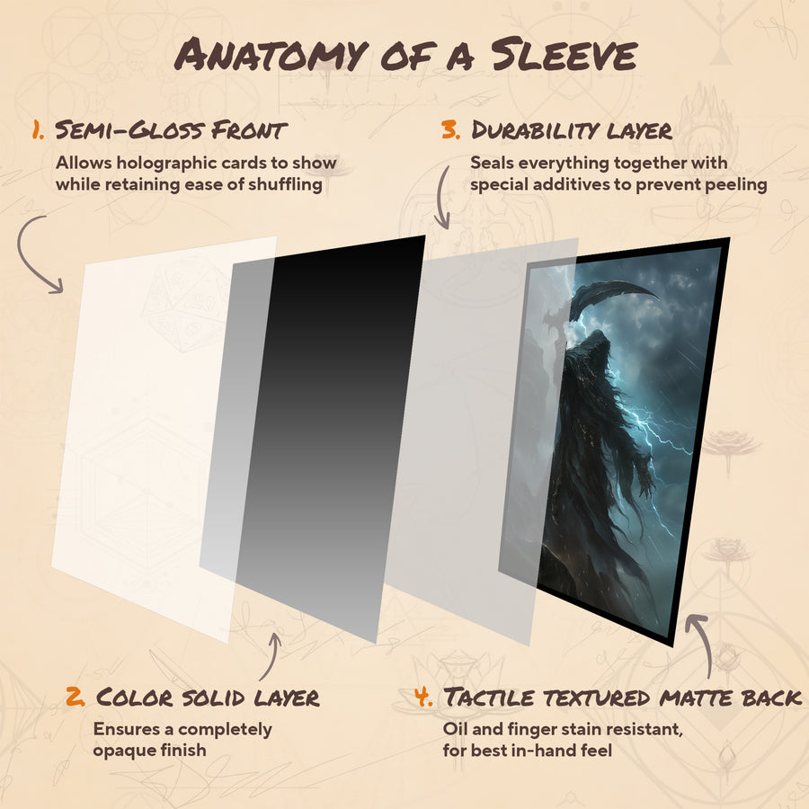 Elevate your gameplay with premium deck protector sleeves, designed with a matte back finish for enhanced grip, ensuring smooth and glare-free control.